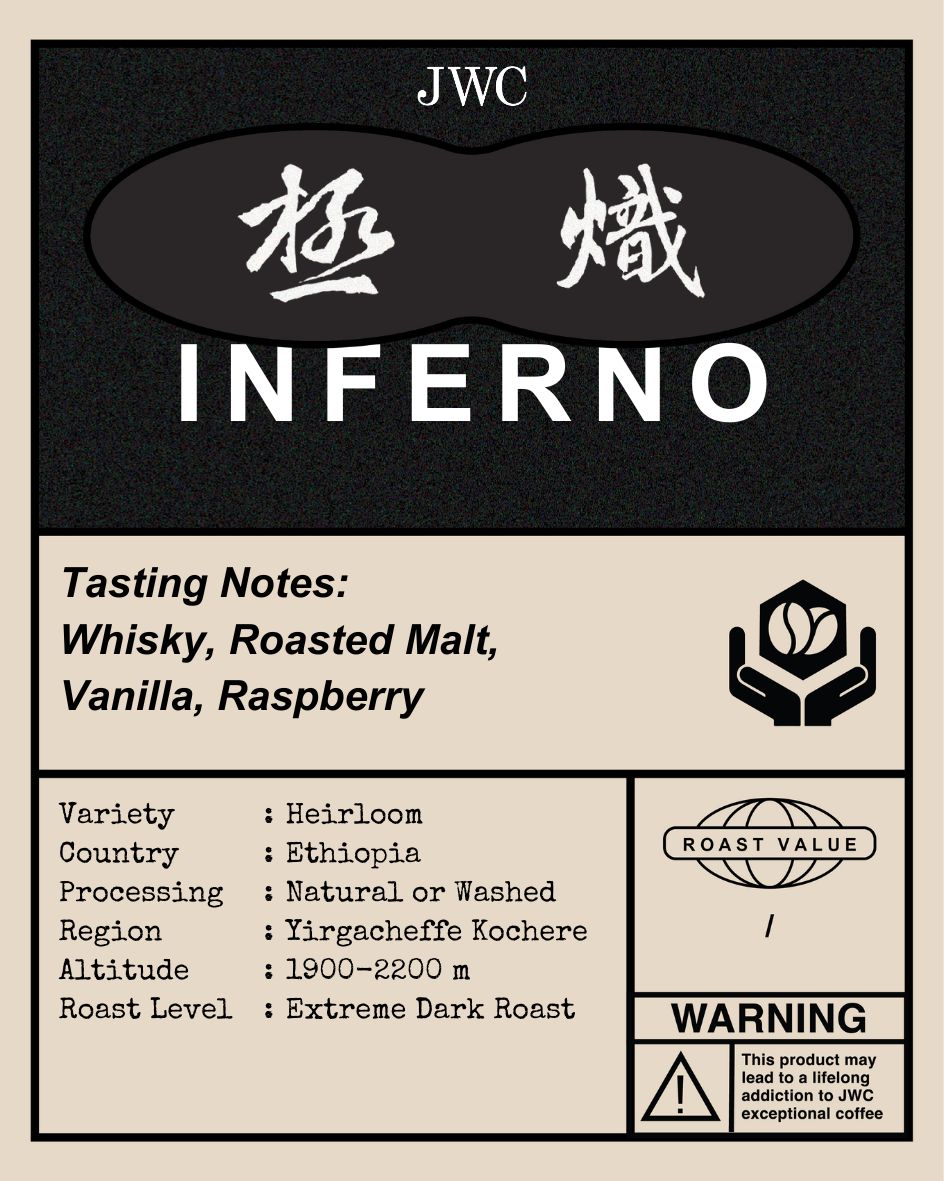 Yirgacheffe is known for its clean, floral and juicy washed coffee and high quality sun-dried with genuine and unique fruits and berry flavours. This washed Ethiopian coffee is vibrant and super juicy. Roasted with our signature Japanese dark roast to enhance the bold and whisky like sweetness and smokiness with notes of vanilla, raspberry and floral finish. The cleanest dark roast coffee that you’ve ever tasted.